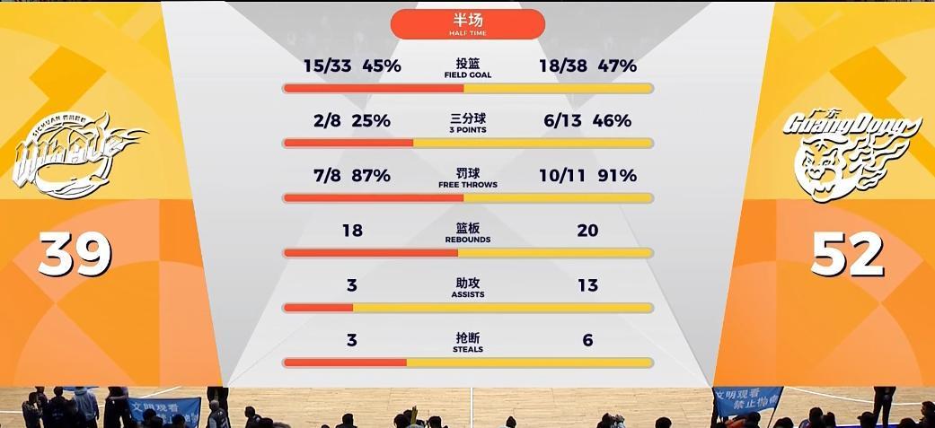 胡队段睿骐各得5分,萨林杰3中3砍下6分,四川面对广东全场紧逼并没有慌乱,打法合理,中投稳定,对奎因防守做得不错,半节广东18-13领先四川。